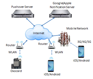Ablauf beim Senden einer Push-Message von der Oxocard zum Handy: